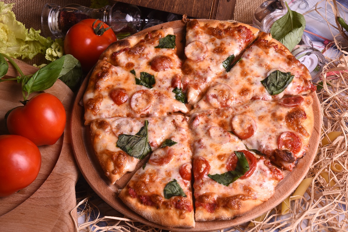 Domates sosu, mozeralla peyniri, çeri domates, fesleğen.